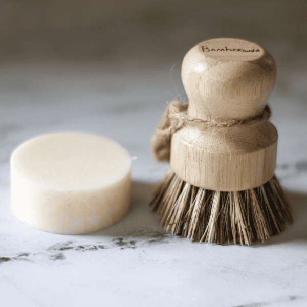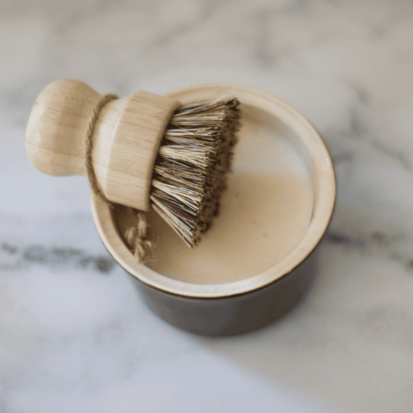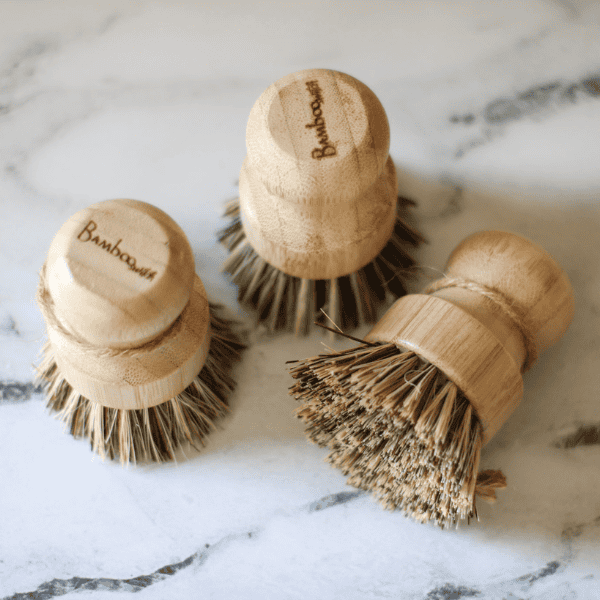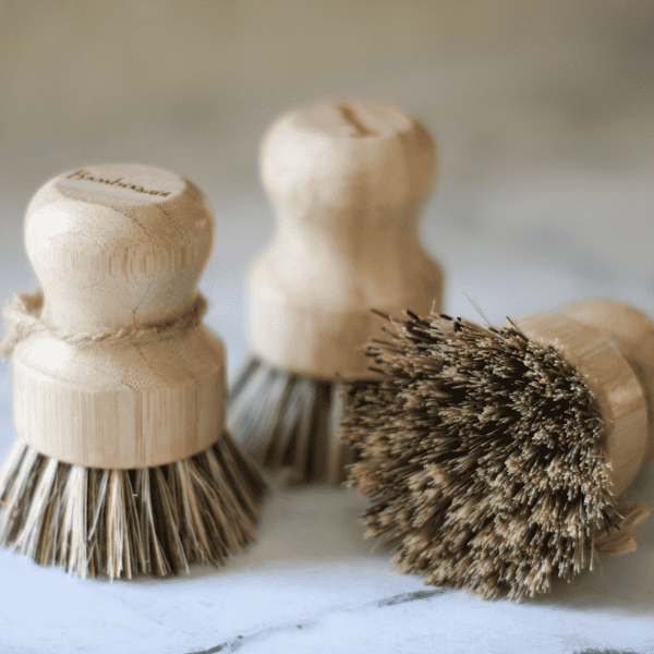 Scrub away tough stains and residue with this bamboo pot scrubber brush.